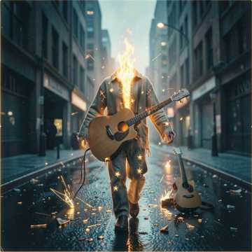 Compose a raw and heartfelt melody, where acoustic guitar scratches with rebellion and piano whispers secrets of the night, Mix punk fire with folk soul—angry, tender, restless, Every chord hits like a heartbeat, every note tells a story of loss, fight, and freedom, Let the vocals crack, the rhythms stumble, and the music bleed honesty, Be wild, honest, fragile, and defiant all in one acoustic explosion, Add a slightly raspy male voice, intimate yet raw, carrying emotion in every crack and whisper