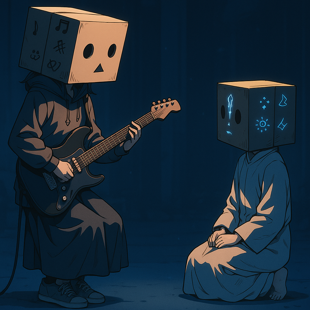 Lo-fi Emo Rock, Glitch Pop, Experimental Alt Rock, Instrumental Electronica, Post-Human Sound, Cute Lo-Fi Rock, Anime-core, Broken Japanese Pop Rock, J-Cute Rock, Lo-fi Emo Rock, Glitch Pop, Experimental Alt Rock, Instrumental Electronica, Post-Human Sound, female vocals, Avant-Guitar Sound Art, Post-Genre Guitar Music, Abstract Rock, Noise-Kissed Clean Tones, Loopless Guitar Performance, Free-Flow Structure, Sonic Texture Focus, Emotional Frequency Music, Guitar as Environment, Anti-Hook Composition, Experimental Alternative, Soft Female Vocals, Light Japanese-Style Female Vocals, Youthful Voice, Clear High-Pitched Tone, Gentle Anime-Inspired Vocal Delivery, Breathy but Clean, Cute yet Natural Expression