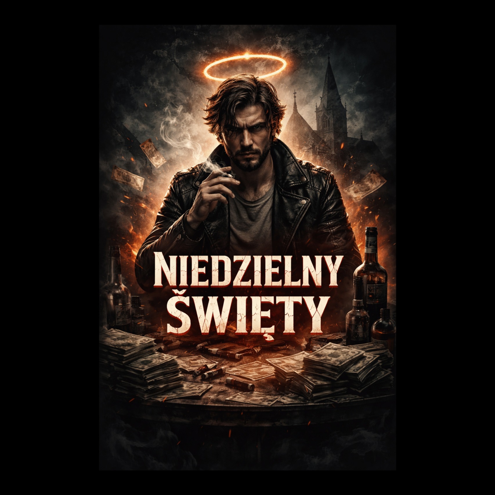 Polish rap, dark trap beat, gritty oldschool hip-hop vibe, Cypress Hill inspired, heavy bass, slow tempo, melancholic and ominous atmosphere, street rap vocals, raw and aggressive delivery, minimal melodic hook, underground hip-hop style, warning tone, ironic and dark mood