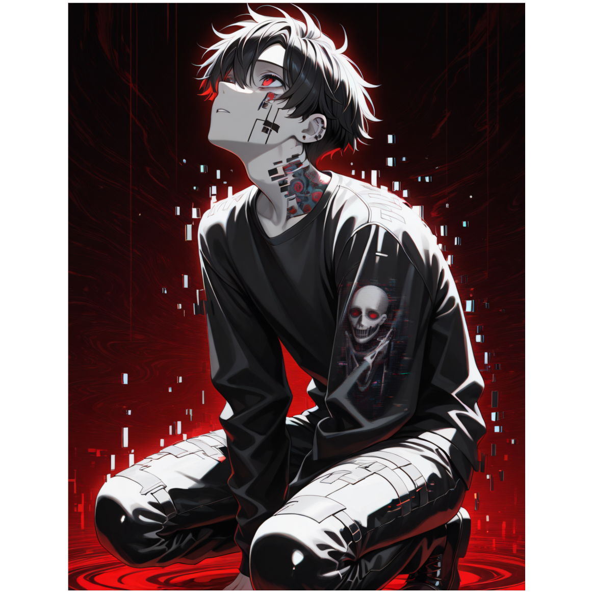 Opening with atmospheric pads and haunting vocal chops, the track melds emo trap’s intimate guitar riffs with glitch trap’s stuttered hi-hats and unpredictable snares, Witch house textures—drone synths and deep bass pulses—build tension, with pitch-bent samples sparking transitions between dreamy verses and explosive, distorted refrains, heavy glitched out vocal chops