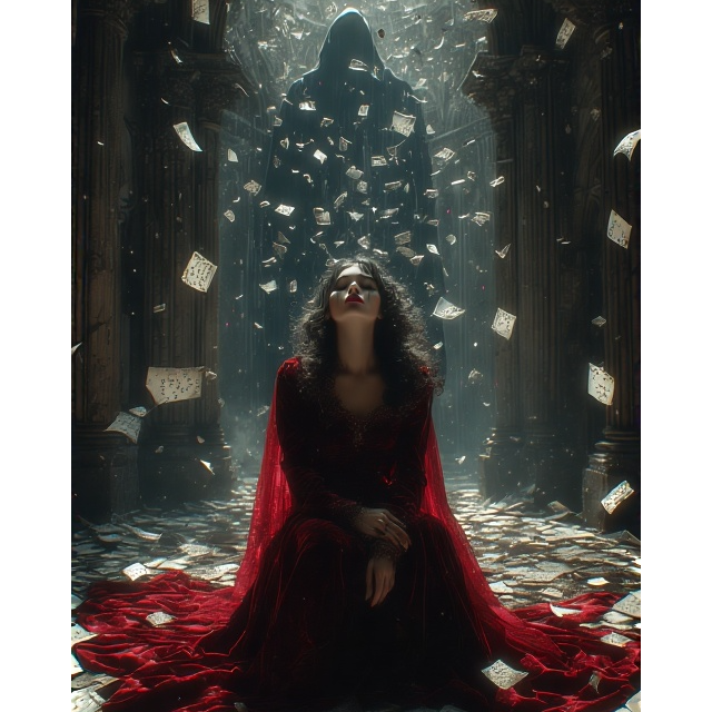 crimson noir, darkly atmospheric, emotionally charged, gothic metal influenced, dark pop melodic, industrial textured, shoegaze drenched, slow burning and intense, elegantly chaotic, velvet smooth but violent, ethereal yet heavy, cinematic and brooding, beauty vs brutality, haunting feminine vocals, layered reverb soundscapes, explosive emotional climaxes, tragic poetic, modern gothic music, Vocals: Low male ensemble with chant-like delivery, monastic dread, with one: earthbound, ritualistic, intimidating, unison or fourth/fifth harmonies, slow call-and-response with echo effects, breath noise and body percussion for texture