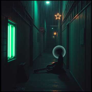 Moody cinematic alt-rock with modern electronic undertones, Tempo slow-medium (72–78 BPM), Minor key (D minor or E minor), Sparse intro with low analog synth pad, distant hum, and subtle vinyl hiss, Verse features restrained electric guitar with delay, minimal piano, and pulsing sub-bass, Vocals intimate, male, slightly raspy, close-mic’d, calm but resolute—spoken-sung delivery that feels confessional, intelligent, nocturnal, Pre-chorus builds with rising pad and muted drums, Chorus opens wider: full drum kit (deep kick, toms, restrained cymbals), layered guitars, swelling synths—emotional but controlled, never bombastic, Bridge drops to near silence with ambient tones and breath, then final chorus returns with added harmony and quiet triumph, Overall mood: late-night creation, self-reflection, digital glow, solitude as power, Think modern indie cinematic meets contemplative rock—serious, focused, timeless