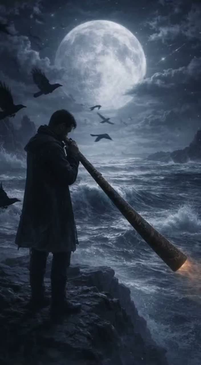 Dark cinematic electro-tribal rock with mythic gravity, Tempo ~86–90 BPM, Minor key, Track opens with low, breathy didgeridoo drone pulsing like an ancient heartbeat, layered with distant wind and sub-bass, Sparse drums enter slowly—ritualistic, restrained, deliberate, Verses are minimal: didgeridoo, muted guitar swells, subtle analog synths, Vocals: male, calm, unnervingly controlled, low affect, precise diction—INFJ Sigma, sovereign, post-betrayal clarity (spoken-sung hybrid), Chorus does not explode; it descends—heavier through weight, not volume, Bridge strips back to didgeridoo, heartbeat bass, and faint choral pads like frozen witnesses, Final chorus returns colder, wider, inevitable, Ending fades into breath, drone, and silence, Mood: Jungian shadow, hero’s return, Medusa gaze, Black Mirror truth, timeless and dangerous
