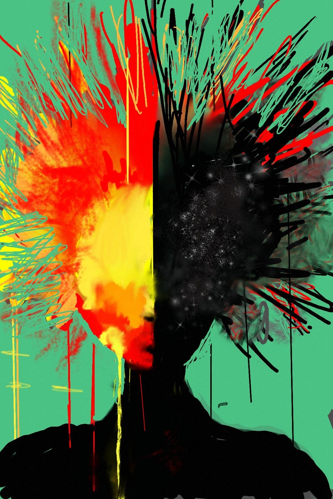European avant-garde jazz exploration 72 BPM, expressive tenor sax with extended techniques (growl, overblowing, key clicks), upright bass drones, sparse brushed drums, subtle piano dissonance, Male baritone vocalise with strange sounds (rolled "rrrr", hissing "shhhh", coughing "kashhh", buzzing "zzzz", breathy improvisational, no words), Soft female alto backing vocalise (distant echo with "shhhh zzzz" textures), Style: introspective European free jazz with unusual vocal sounds, abstract emotional chaos 2025