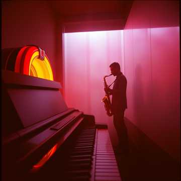 Abstract modern jazz 76 BPM, expressive tenor sax leads with growl and bends, upright bass walking, light brushed drums swing, subtle piano comping, warm Hammond organ drones, Male baritone scat vocalise (growl effects, "ba-da", "shoo-be", improvisational), Female alto breathy echo vocalise (distant "ooh-ah", "ryah" harmony, no words), Style: introspective abstract jazz vocal dialogue, saxophone-focused emotional journey 2025