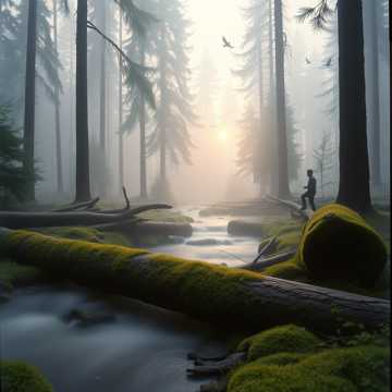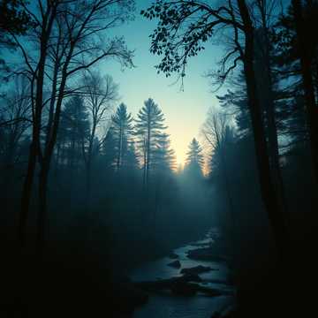 Pure forest healing ambient 40–50 BPM, dominant natural forest sounds (rustling leaves, distant birds, wind in trees, soft stream, occasional wood creak), warm low-frequency drone pads blending with nature, long shimmering textures, no percussion or melody, Very subtle airy synth swells like distant mist, Gradual day-to-night transition over 12–15 minutes, fade to silence, Style: ultra-calming forest soundscape, deep nature immersion 2025