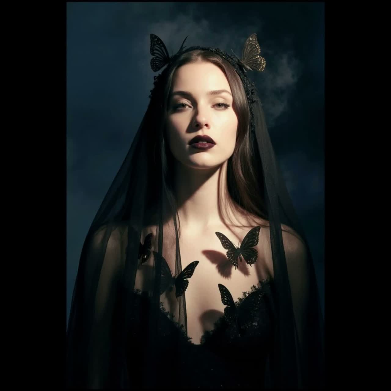 A dark gothic trip-hop and moody electronica track at 72 BPM unfolds with reversed guitar echoes, lush synth pads, and vinyl crackle, Verses layer hypnotic female vocals over pulsing bass, glitchy clicks, reversed piano, and airy effects, Choruses thicken with close-mic harmonies, enveloping synths, tactile bass, and deep reverb, The instrumental interlude spotlights reverse textures and pads, The mix stays spacious, uncluttered, and immersive, bathing everything in a nocturnal, sensual, and slightly menacing atmosphere with wide stereo imaging