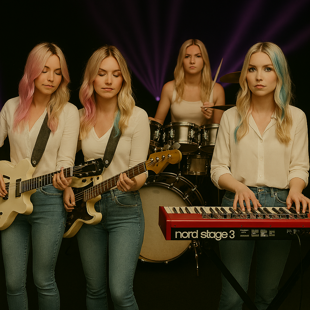 Starts silent 3 seconds, then slaps on bass, funky ES-335, rototoms, electric piano, Gibson ES335, Jazzy/funky vibes, Chorus swells with saxophone riffs, pads, subbass, Bridge breathes, Dreamy, smooth