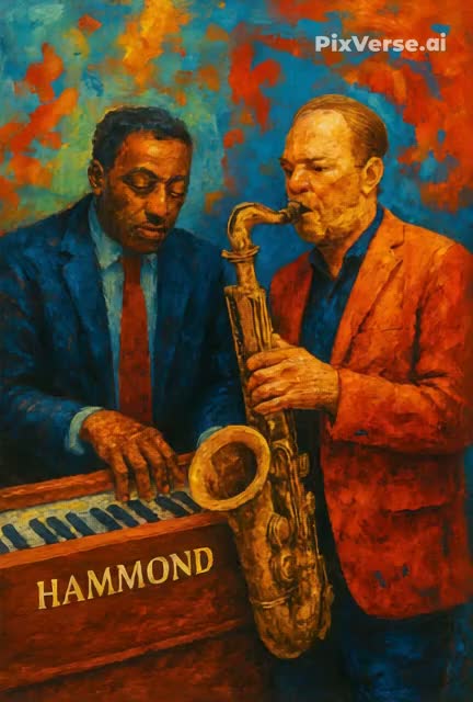 [Saxophone melody and Hammond organ in background]