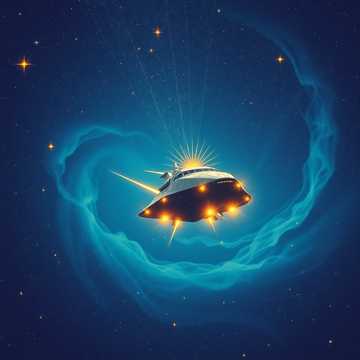 A high-tempo French house track drives forward with filtered disco samples, pulsating four-on-the-floor kick, and gritty sidechained bass, Sharp synth stabs and soaring Europop leads cut through, while robotic vocoder hooks and urgent percussion build intensity into a cosmic, triumphant drop
