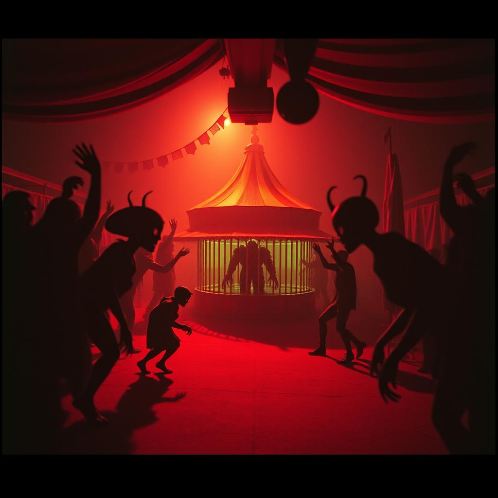 This horror score opens with industrial metal and psychobilly textures: sparse, uneasy synths and whispered male vocals introduce creeping suspense, Verses unleash pulsing drum machines, fuzz bass, jagged guitars, and vocals shifting from whispers to guttural theatrics, Choruses deliver pounding detuned guitars and relentless drums for maximum impact, The bridge mutates with warped music box, carnival sounds, distorted female vocals, manic laughter, slap bass, and wild beats under eerie strings and drones, The outro decays into a sinister drone, a gunshot, and echoing, maniacal laughter, The result is a grinding wall of industrial psychobilly chaos, layered with moments of deranged rock intensity