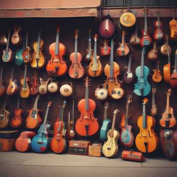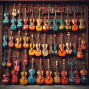 Greek melody, instruments Bouzouki, baglamas, accordion, violin, kithara, lyre, aulos, harmonium, organ, barrel organ, zither, harp, double bass