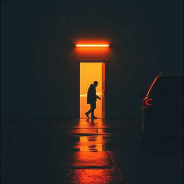 Dark Baroque Pop / 1970s Singer-Songwriter Rock Ballad, Mood: Cinematic, introspective, claustrophobic yielding to melancholic liberation, A sense of quiet, desperate resolve, Instruments: A solitary, mournful Wurlitzer electric piano sets the foundation with deep, resonant chords, A brushed snare drum and muted kick provide a slow, heartbeat-like pulse, A fretless bass line slinks through the verses, The chorus swells with a melancholy Mellotron string section (think 'Strawberry Fields') and a distant, heavily reverbed slide guitar, The bridge strips back to just piano and a close-mic'd, breathy vocal before a final, powerful chorus where a full, somber drum kit and a sparse, crying guitar solo emerge, The outro features only the Wurlitzer, the sound of a car engine starting, and the faint, fading noise of tires on wet pavement, ‑Country Twang