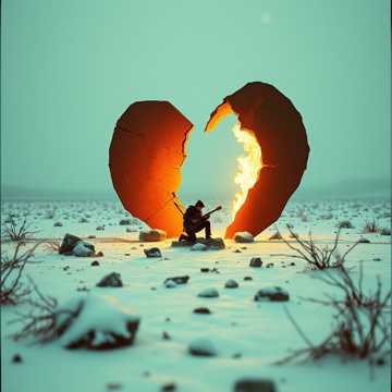 Atonal Foundation: A slightly detuned, melancholic acoustic guitar provides the main chordal structure, played with a slow, finger-picked arpeggio, Atmosphere: A haunting, breathy baritone saxophone provides a droning, circular motif that represents the oppressive silence, It hums and groans beneath the verses, Texture: Subtle, textural percussion: the sound of a dusty, slow-motion vinyl crackle, the distant hum of a refrigerator, the soft tick of an analog clock, Vocals: A deep, weary, and close-mic’d baritone voice, almost spoken-sung, with layered, dissonant harmonies in the chorus to create a sense of fractured self, Xenharmonic Element: In the bridge and outro, a microtonal synth pad