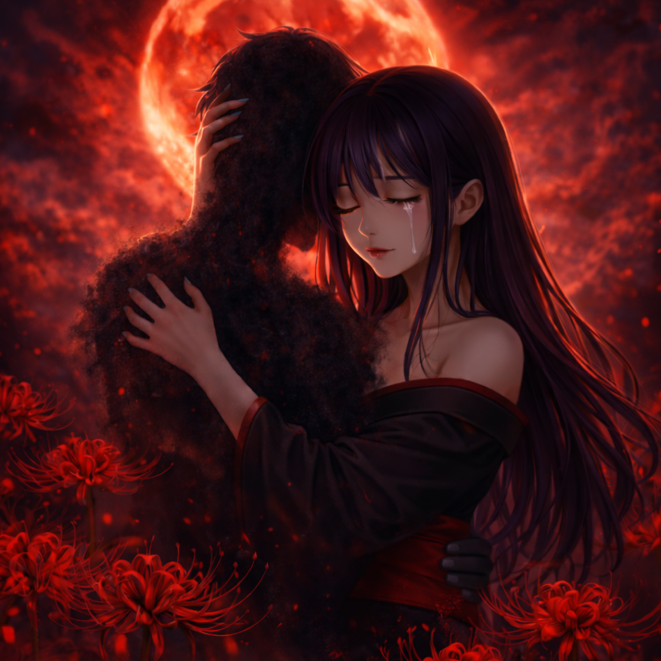 Dark, emotional Japanese anime opening theme in the style of melodic J-rock with gothic and suspenseful elements, featuring emotive female vocals, Incorporate Japanese traditional instruments (shamisen, koto, shakuhachi) woven subtly into the arrangement for a haunting, oriental feel, Mood: brooding, intense, mysterious, with moments of fragility and sudden bursts of power, Slightly creepy atmosphere with whispered backing vocals, eerie harmonics, and dissonant accents, Tempo: mid-fast (95–110 BPM) — open with eerie shamisen plucks and soft taiko hits, then build into distorted electric guitars, heavy bass, and dynamic drumming, Vocal style: female, expressive and dynamic — breathy and fragile in verses, powerful belts in the chorus, with slight rasp when emotional, Instruments: distorted electric guitar, bass, drums, koto, shamisen, shakuhachi, synth pads for ambience, occasional metallic percussion for tension