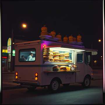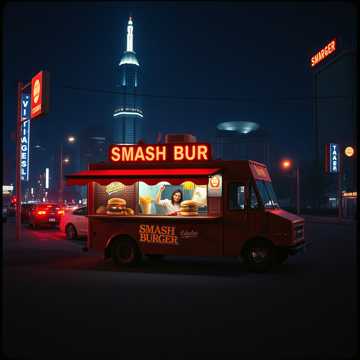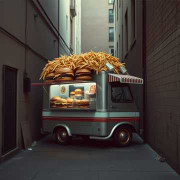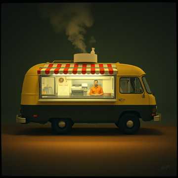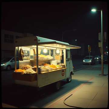 A gritty, 90s-inspired East Coast hip-hop track with a raw, cinematic boom-bap vibe, 85-95 BPM, pulsing with streetwise hunger and triumph, Anchor with dusty, hard-hitting drum breaks, deep 808 bass, and soulful, chopped vinyl samples of jazzy piano and mournful strings for a nostalgic yet menacing glow, Layer subtle turntable scratches, sparse hi-hats, and warm, crackling vinyl texture to evoke a smoky, urban alley at dusk, Vocals are male-led, gruff, and commanding, with ad-libs and layered rap flows, delivering tales of hustle and grit, Production is unpolished yet cinematic, with lo-fi reverb and tape hiss, set in a gritty cityscape where food trucks and street legends collide, Mood is intense, triumphant, and unapologetic, radiating the hunger of the grind, The story flows naturally, no fixed length, for a street anthem that hits like a heavyweight, Avoid trademarked terms to ensure compliance