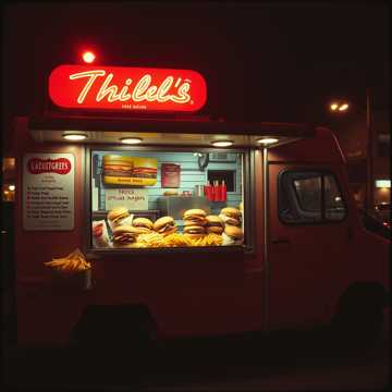A soulful, introspective East Coast hip-hop track with a 38 Spesh-inspired boom-bap vibe, 80-90 BPM, radiating grit and warmth, Anchor with crisp, dusty drum breaks, warm 808 bass, and soulful, looped piano samples with faint gospel hums for a reflective street glow, Add subtle vinyl crackle, sparse snares, and minimalistic horn stabs to evoke a late-night food truck lot under city lights, Vocals are male-led, gravelly, and introspective, with smooth flows and occasional ad-libs, weaving tales of hustle and soul-feeding legacy, Production is raw yet warm, with lo-fi reverb and tape hiss, set in a vibrant urban cookout where mobile kitchens rule, Mood is gritty, triumphant, and heartfelt, celebrating the grind of Te'Licious, The story flows naturally, no fixed length, for an anthem that honors street roots and soul food