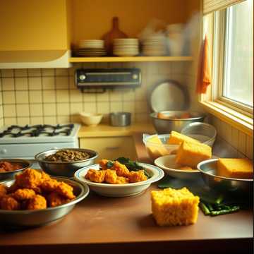 Gritty East Coast hip-hop steeped in 90s boom-bap soul, channeling Buffalo’s underground rap pulse, Picture lo-fi production with crackling drum breaks, moody basslines, and chopped soul samples—think mournful piano riffs or gospel choir loops dripping with nostalgia, The vibe is cinematic, raw, and real, weaving street-smart storytelling with the warmth of a family-run soul food spot, Lyrics paint vivid scenes of struggle and triumph, using slang like “plug, ” “bricks, ” “raw, ” and “the set” to tie menu items (catfish, collards, pot roast) to a hustler’s grind, Delivery is intense, deliberate, with a conversational flow and punchy cadence, punctuated by ad-libs (“Ayo!” “Uh!”), The track feels like a street sermon, celebrating resilience, legacy, and community—soul food as a metaphor for life’s hustle, served with love and grit, (