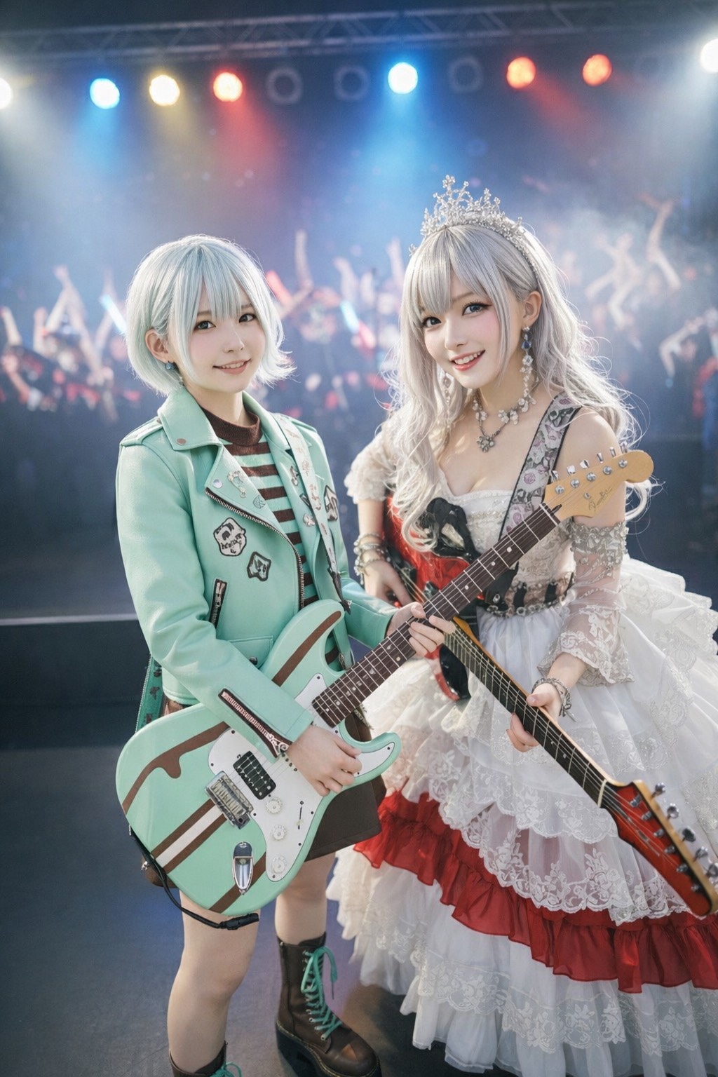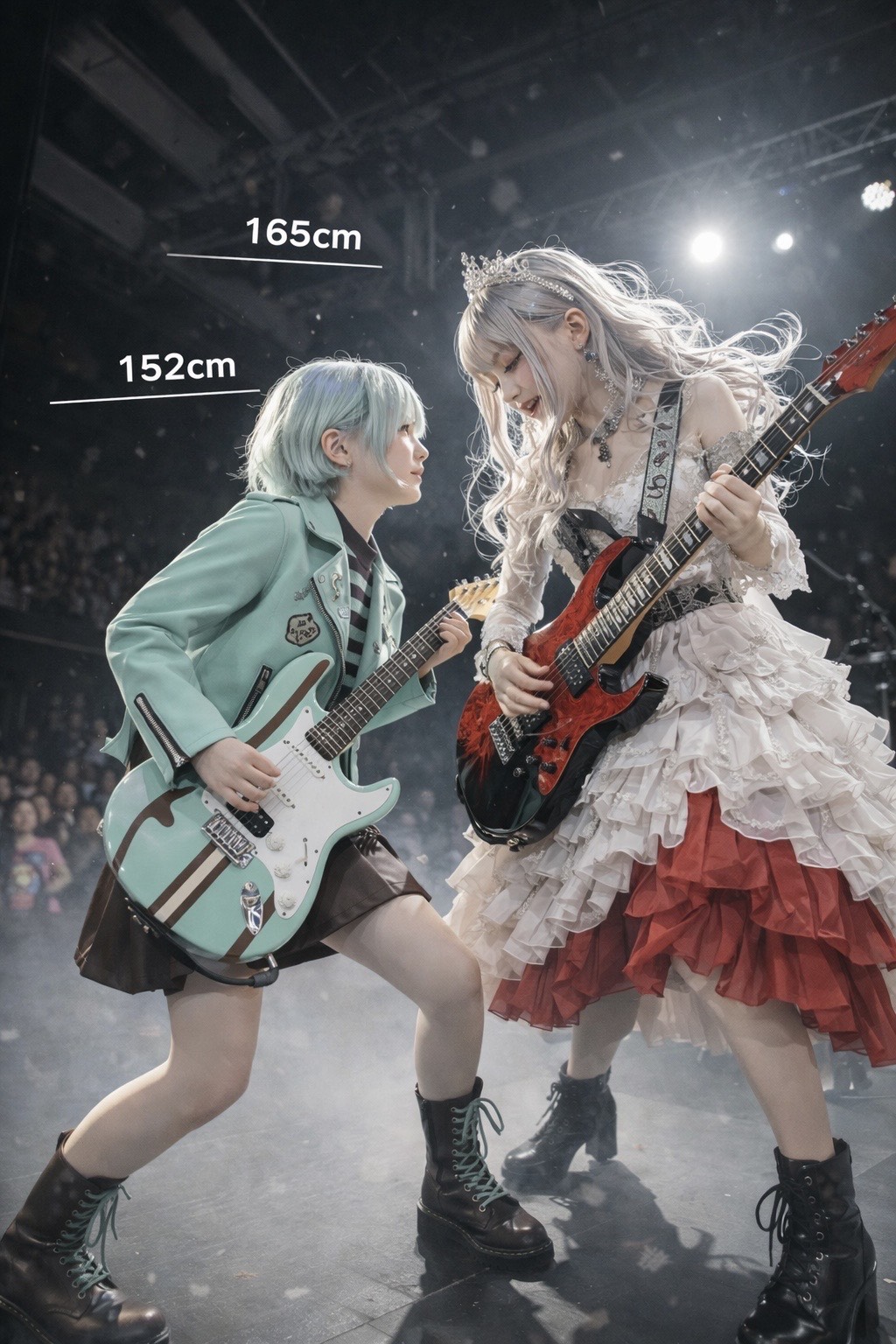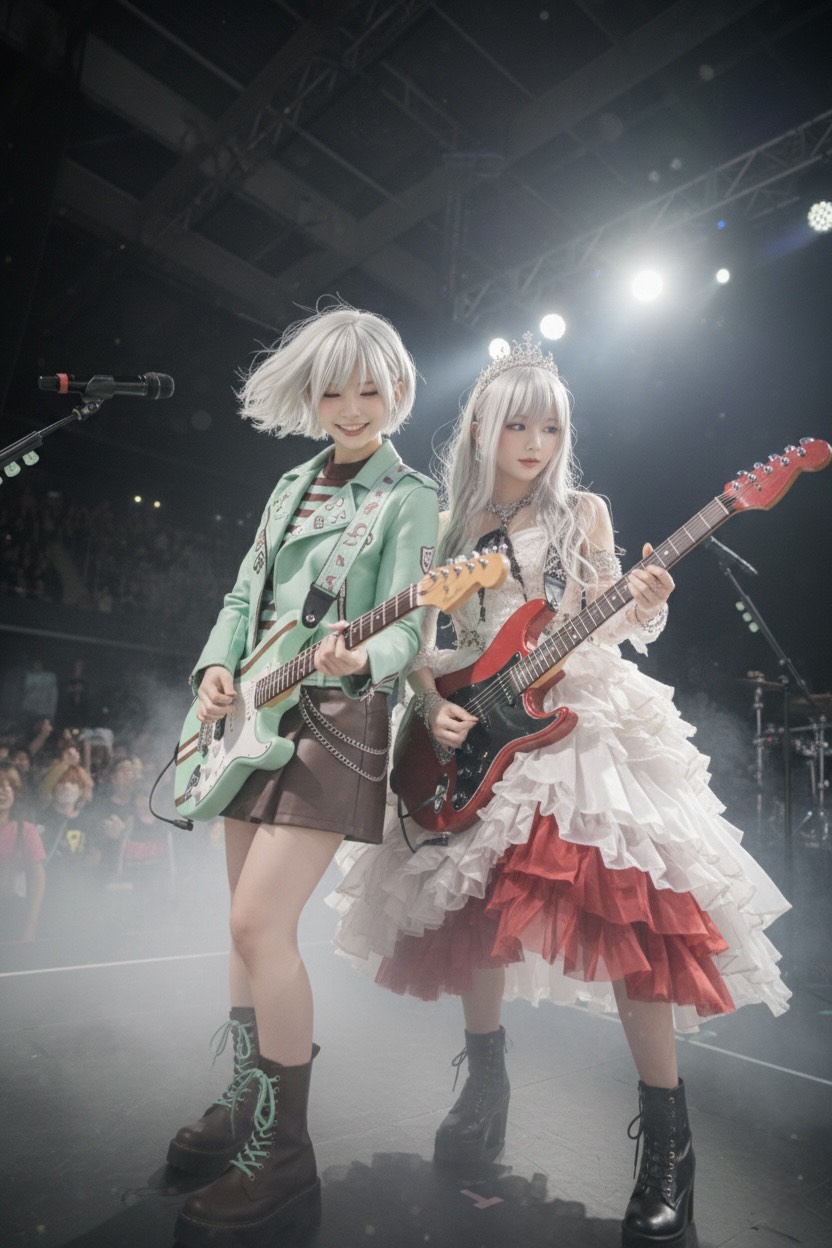 glowing synth accents, hard rock, “hey! hey!” call-and-response, american hard rock mixed with hyperpop sparkle, very high-pitched young anime-style female vocal with a bright, breaks, and dramatic breaks for an, strong, dramatic, low, hyperpop, rapid chanting, strong 4/4 groove, mix sweet melodic singing, pop, rapid, and flashy shredding fills, include pop-friendly hooks, bright, and short sharp shouts, add heavy low-tuned distorted guitar riffs, anime, cute tone and powerful delivery, fast 180 bpm, vocal, palm-muted patterns, rap, thunderous double-kick drums, tone, quick-fire rap phrases
