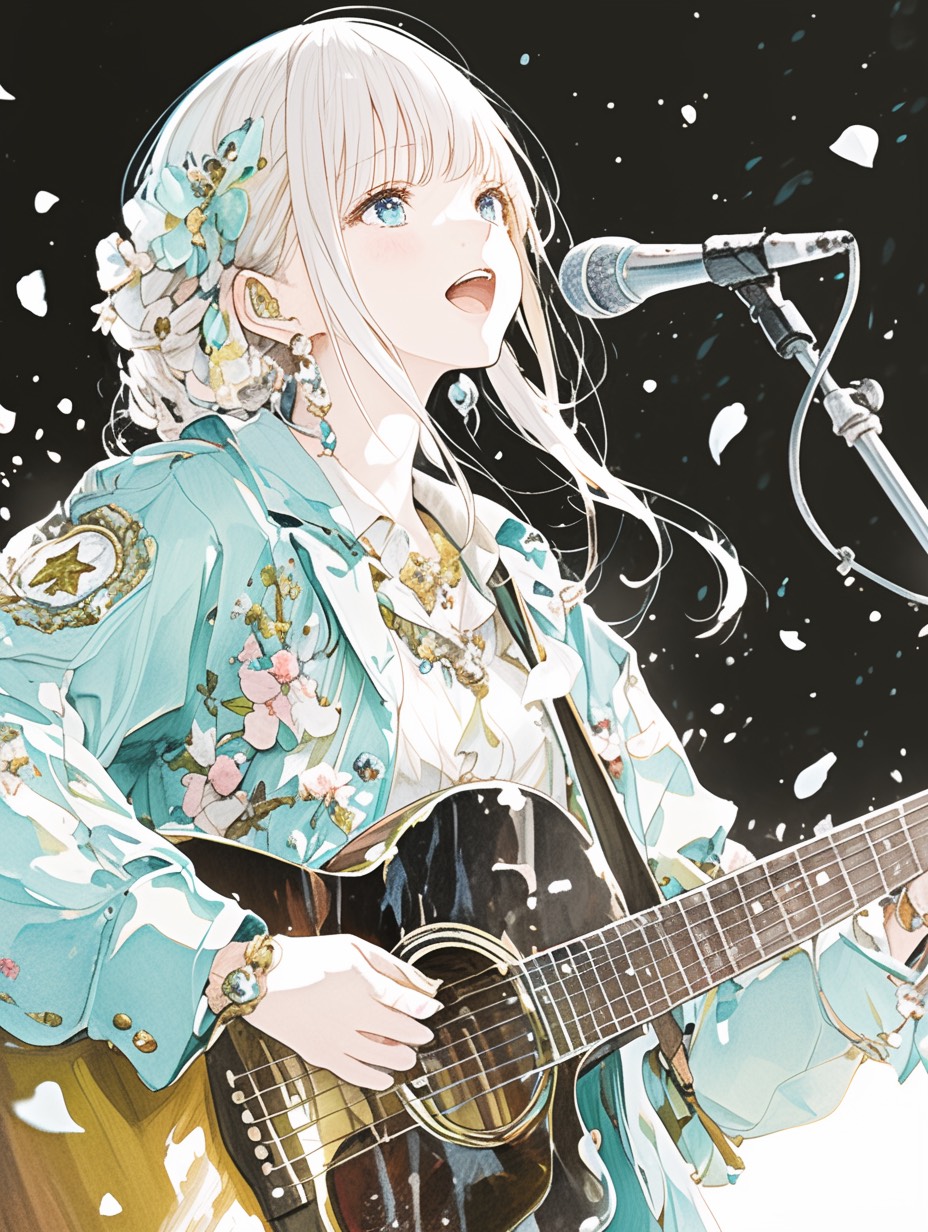 folk, Japanese female vocal, acoustic guitar, melancholic, sweet, slow, fingerstyle, tone, acoustic, emotional, vocal
