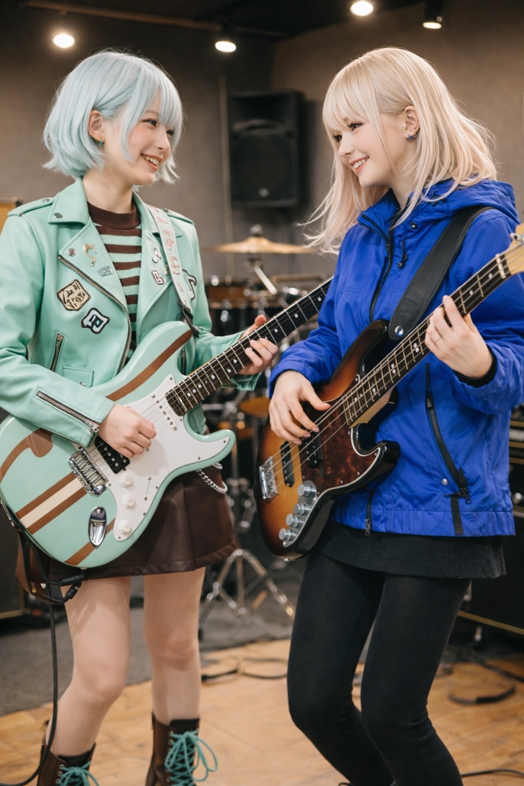 rap, groove-driven light metal, slap bass as main rhythmic hook, funky popping bass lines, bright and pop electric guitar with catchy cutting riffs, sharp light metal lead guitar with fast alternate picking and melodic shredding, three female instrumentalists session, high technical performance, tight rhythm, dynamic build, energetic and cool atmosphere, studio session vibe, modern Japanese band sound, powerful yet playful, instrumental focus, no rap, no growl, electric, metal, rhythmic, light, pop, playful, bright, funky, dynamic