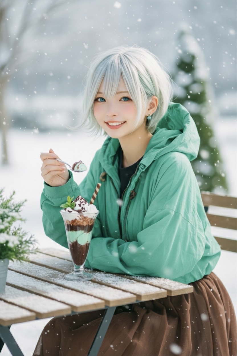 チョコミントパフェ〜雪の日に❄️🌱🍫🍨
