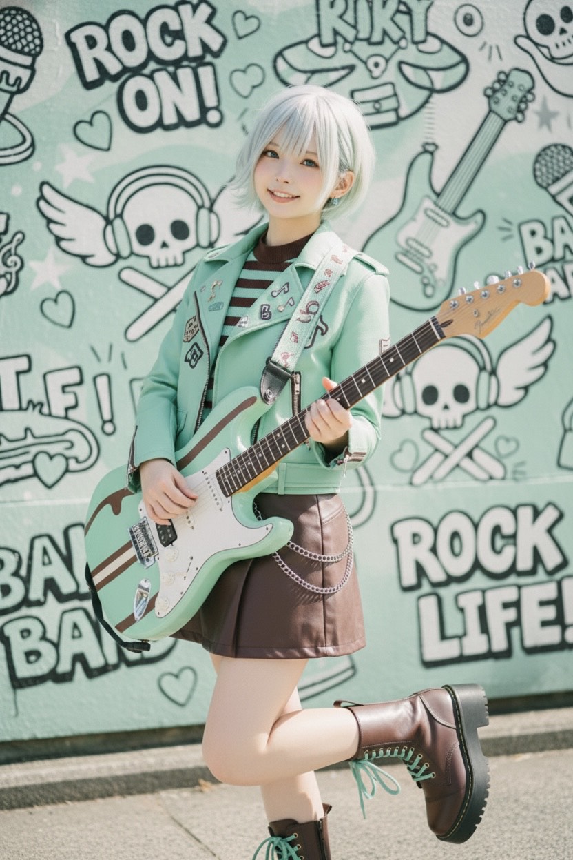 colorful, light synth accents, emotional, bright electric guitars, bright, powerful drums, slightly husky edge, high-energy japanese girls' rock, electric, light, playful, driving rock groove, sweet-but-cool rock anthem, cool twist inspired by "chocolate sweetness" and "mint freshness" reflected in both melody and dynamics, vocal, rock, j-rock, attitude, young, strong, catchy modern j-rock hooks, female vocal, catchy chorus harmonies, dynamics