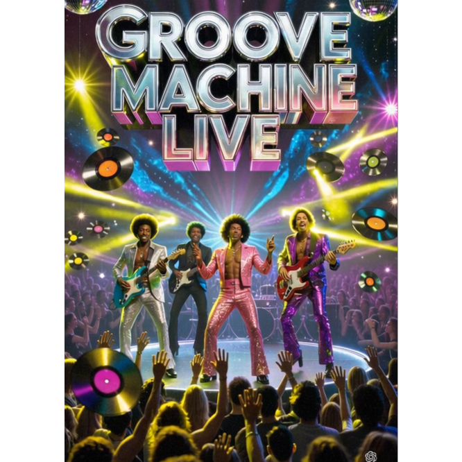 Groove Machine, High-energy 80s funk jam, syncopated slap bass, funky wah-wah guitars, dynamic off-beat drums with funky ghost notes, wild brass stabs, groovy handclaps, smooth male lead vocals, playful spoken interjections, Make the groove unpredictable and dancefloor-ready, Clean stereo mix, fat bass, crisp snares