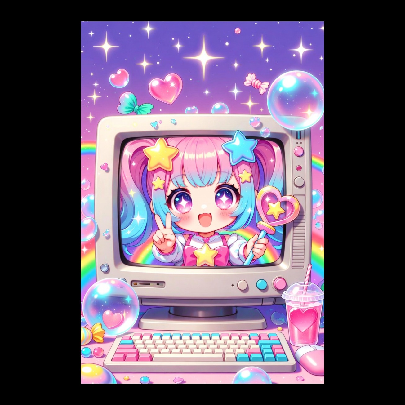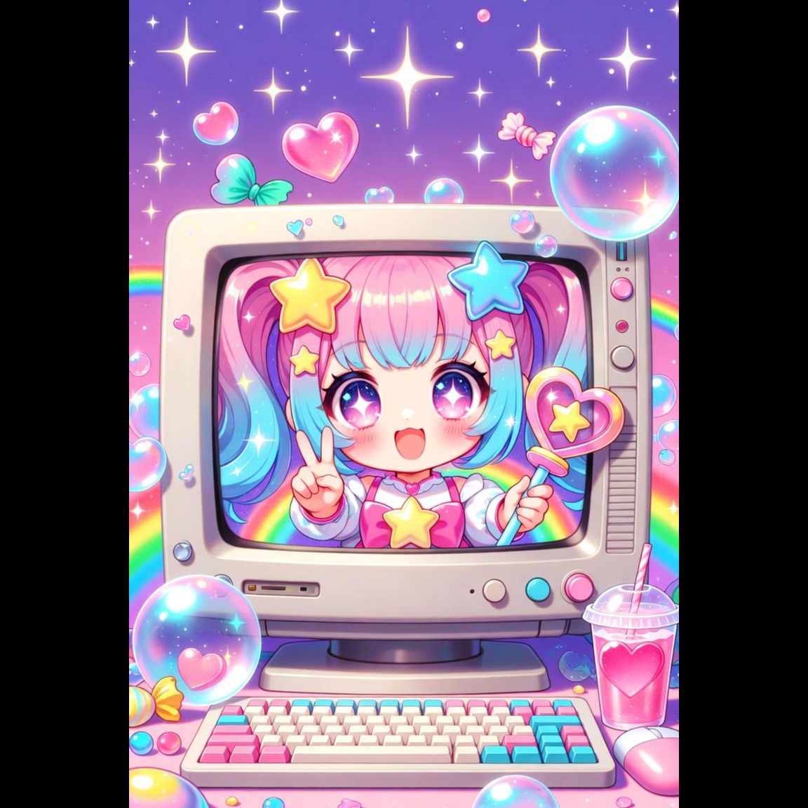 Genre: Vocaloid, 8-bit chiptune, cutecore, hyperpop bubblegum, glitch hop, lofi anime idol, kawaii core vocaloid