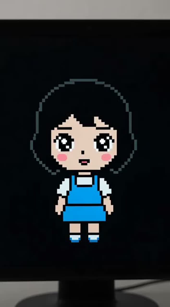 Theme: POV newly activated chibi pixel girlfriend first "waking" to world/user, wonder at chibi sprite/old-game look, naïve love startup