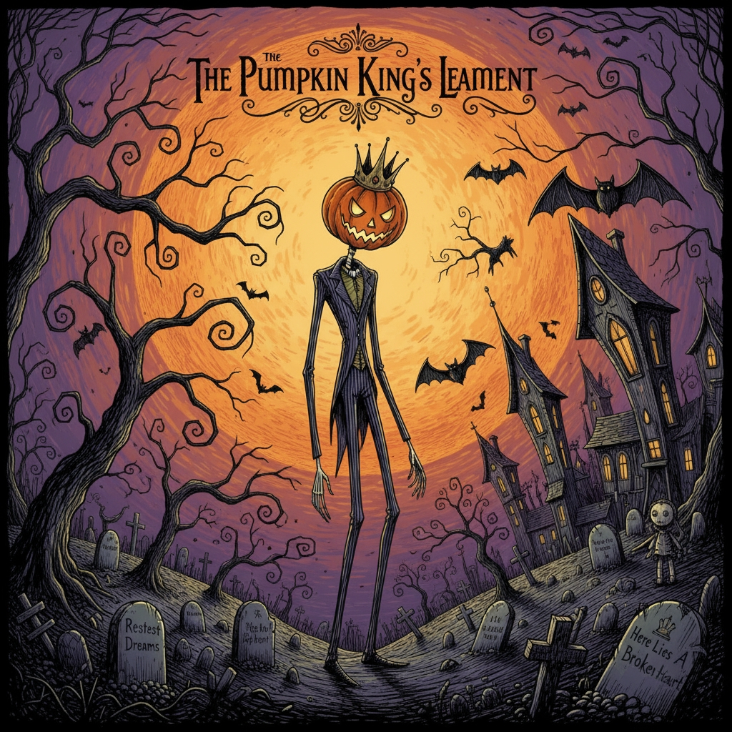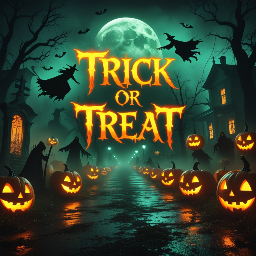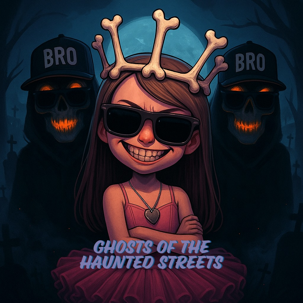 Playful Halloween Rap with spooky cartoon energy, mischievous male vocal delivery, rhythmic hip-hop beat with eerie ambience, creaking door fx, ghostly whispers, vinyl scratches and haunted house sound design, Think “Goosebumps meets Slim Shady in a trick-or-treat cypher, ” Bounce-heavy drums, upright bass or tuba stabs, creepy xylophone or theremin melodies, Occasional children choir “ooooh” and sudden BOOO! shout fx, Mix of comedy and horror – spooky but fun, like a Halloween special on late-night TV