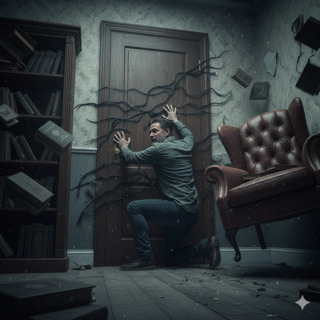 Ein düsteres Soundscape öffnet das Stück mit knackenden Streichern, unheimlichen Whispers und einem verfremdeten, gruseligen Lachen, das sich wie ein roter Faden durchzieht, Basslastige Percussion, verzerrte Synthesizer und subtile Hall-Effekte erzeugen eine bedrohliche Atmosphäre