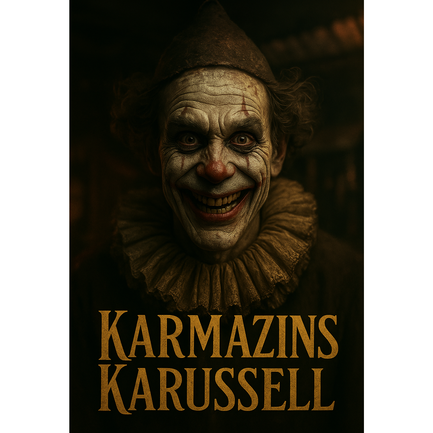 A creepy music box melody introduces the track, soon layered with warped nursery rhyme bells and eerie calliope organ, Thumping Hip-Hop drums and a heavy, distorted bass drive the verse, where a manic, raspy old man voice alternates between fast, choppy Horror-Rap and sing-song carnival taunts, Discordant strings and distant clown laughter heighten tension, while choruses erupt into full haunted-carnival chaos—clattering percussion, twisted synths, and abrupt start/stop dynamics, The bridge rides a menacing beat drop, weaving in low, unsettling drones and reversed fairground sounds before a frantic finale with rapid-fire rap over spiraling instrumentation