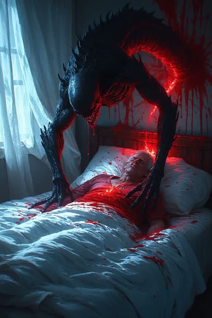 Produce a darkcore track with heavy, distorted synths, deep basslines, and aggressive beats, Combine eerie female and male vocal samples that convey mystery and menace, Use unsettling sound effects such as whispers, ghostly echoes, and crackling fire, The mood is intense, haunting, and cinematic with dramatic drops and atmospheric breaks, Ideal for a horror-themed song about supernatural transformation and vengeance during the night of Samhain