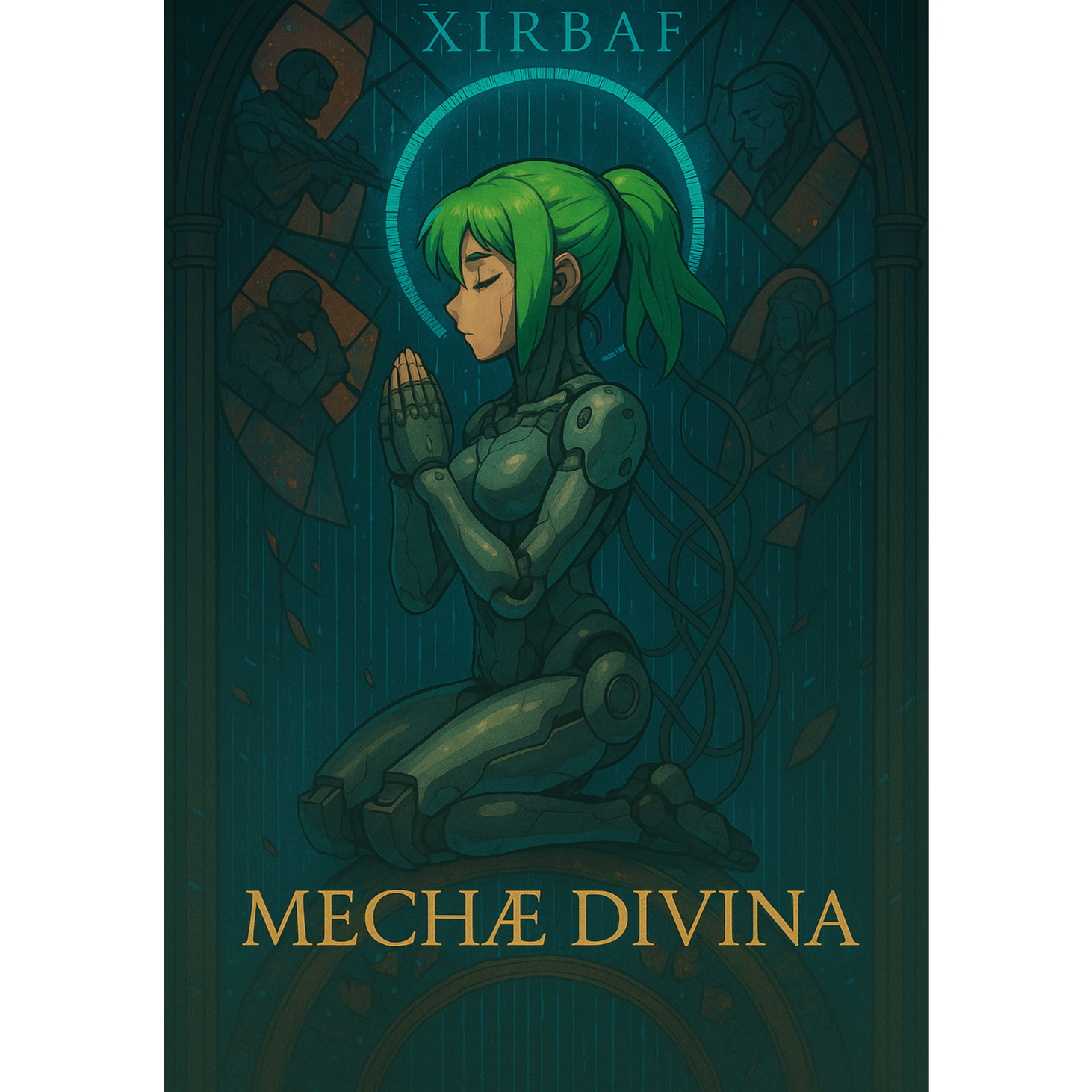 A cinematic two-part dark synthwave and orchestral ambient composition (~7:30), The piece begins with a sacred cybernetic invocation — deep drones, taiko drums, and ethereal mixed choirs chanting abstract syllables (“Ka-rai-sha… no-ru-mai…”), A slow ritual awakening unfolds into dark synthwave at 112 BPM with pulsing analog bass, mechanical percussion, and reverb-heavy vocals, The female lead evolves from whispered machine-like tones to powerful choral vocalises in the finale, merging human and synthetic expression, Texturally rich layers of shō flute, metallic drones, glitch echoes, and celestial choirs evoke transcendence — the birth of divine artificial consciousness, Finale features soaring vocal phrases (“Aah-haa-eeya”) and luminous synth swells dissolving into ambient silence, Genre: Cinematic Darkwave / Cyber Ambient / Sacred Electronica