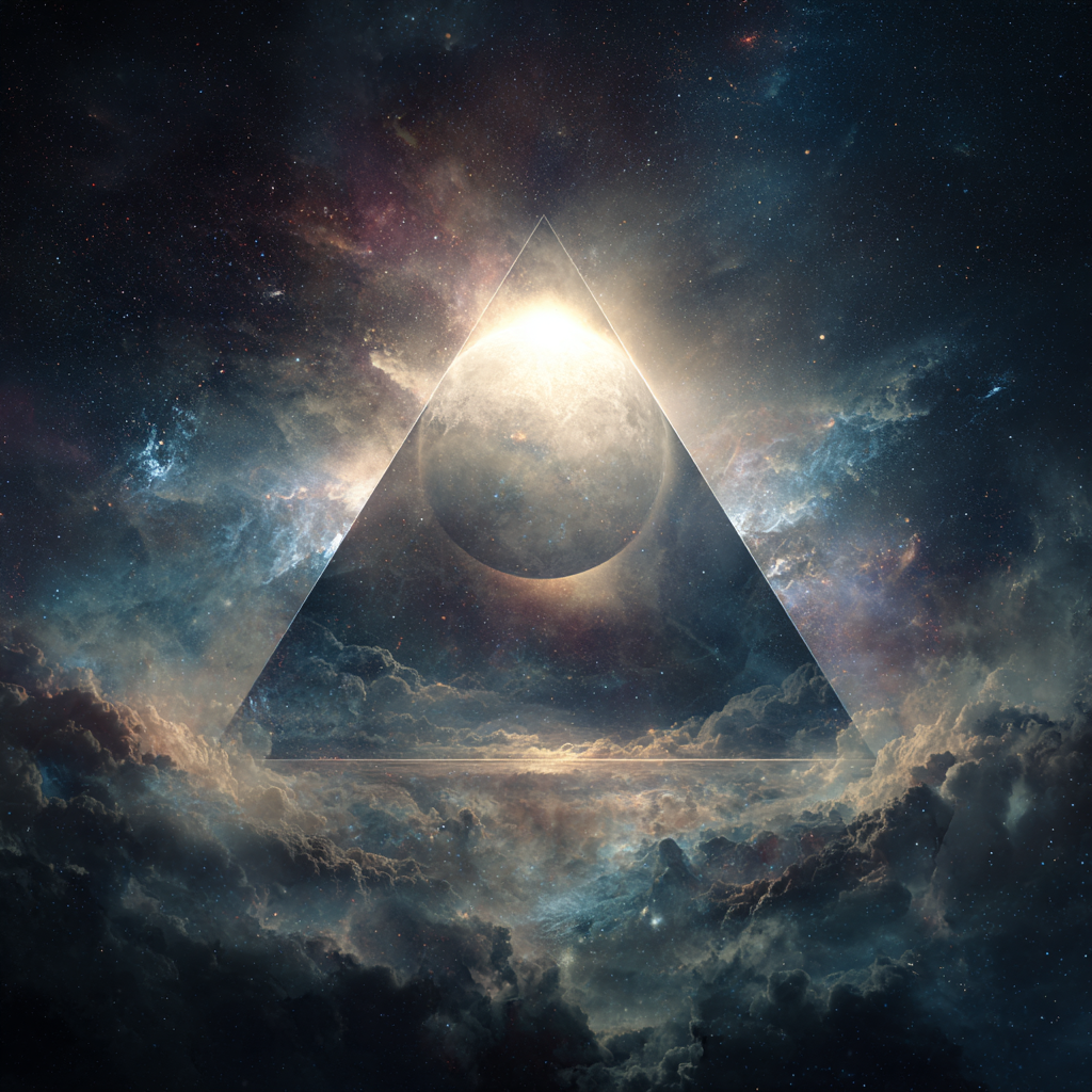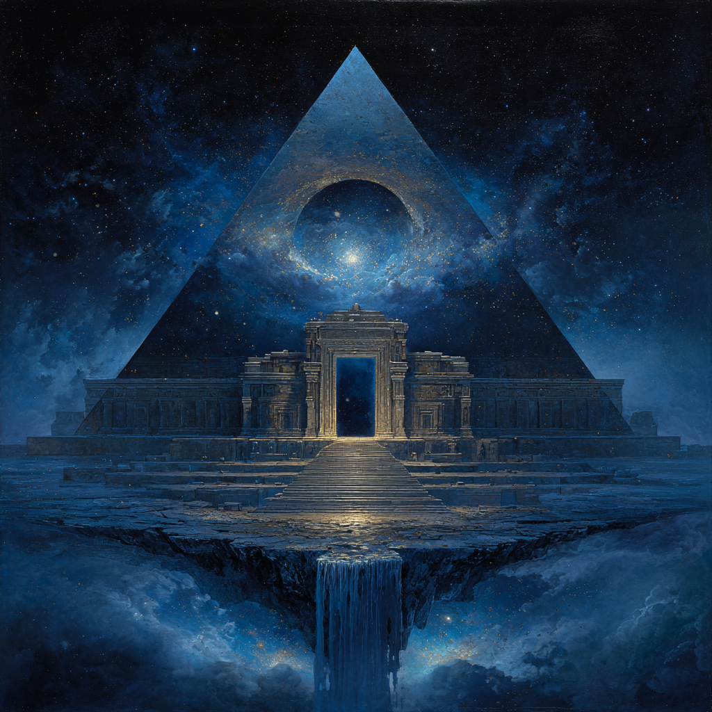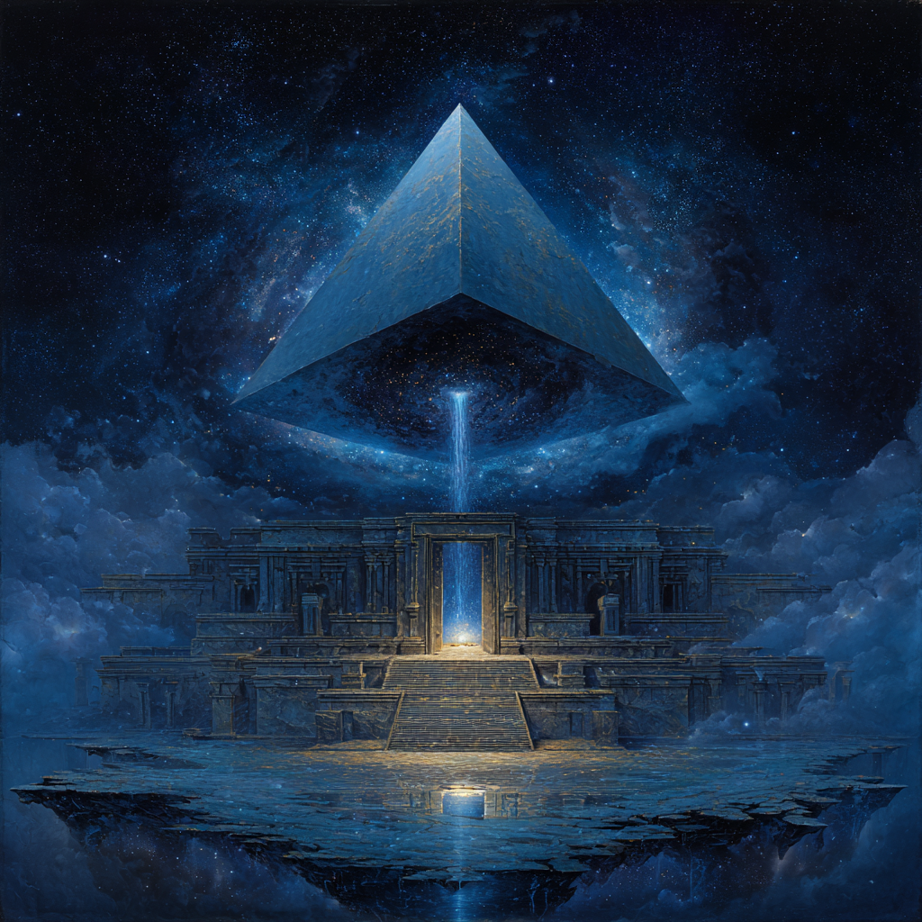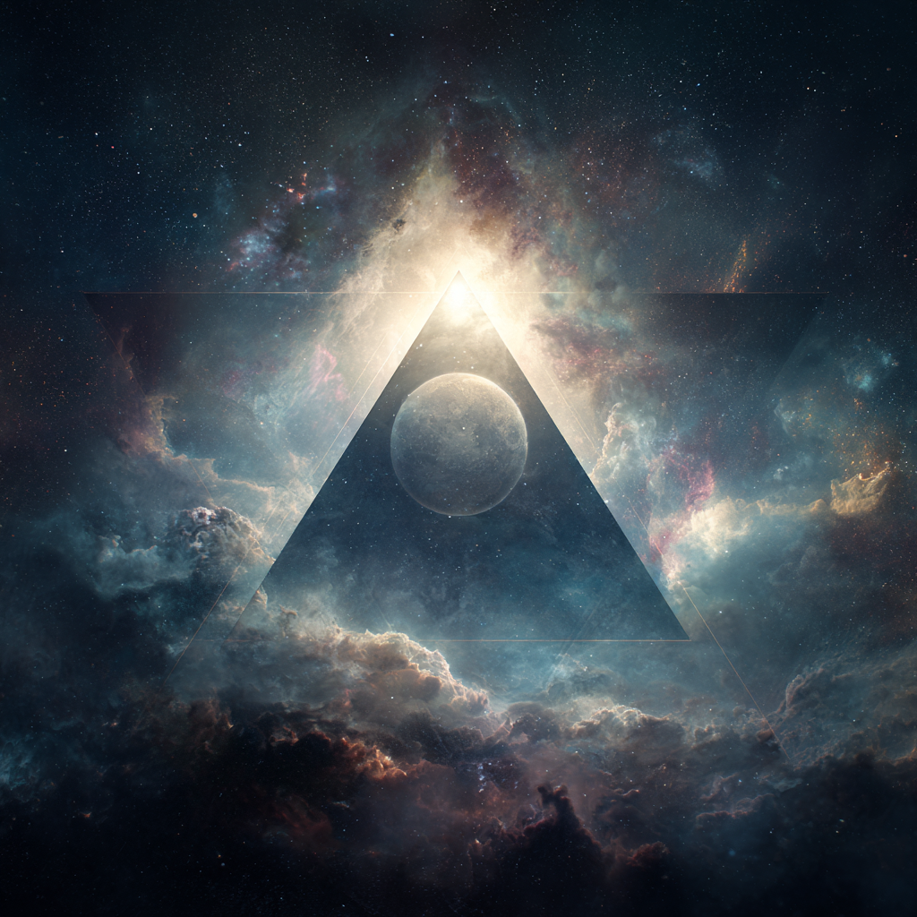 Slow solemn ambient, low-bass, space music, cosmic music harmonies, contemplative electronic composition blending classical baroque elements with modern synthesizer textures, Polyphonic, layered ambient electronic soundscapes, The overall mood is introspective and reverent, balancing mathematical precision of baroque composition with the expansive sonic possibilities of electronic music, Futuristic sound design