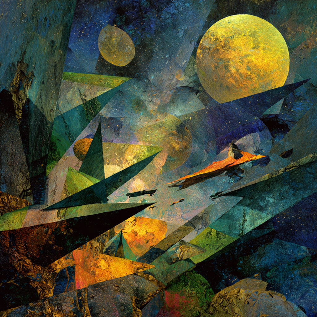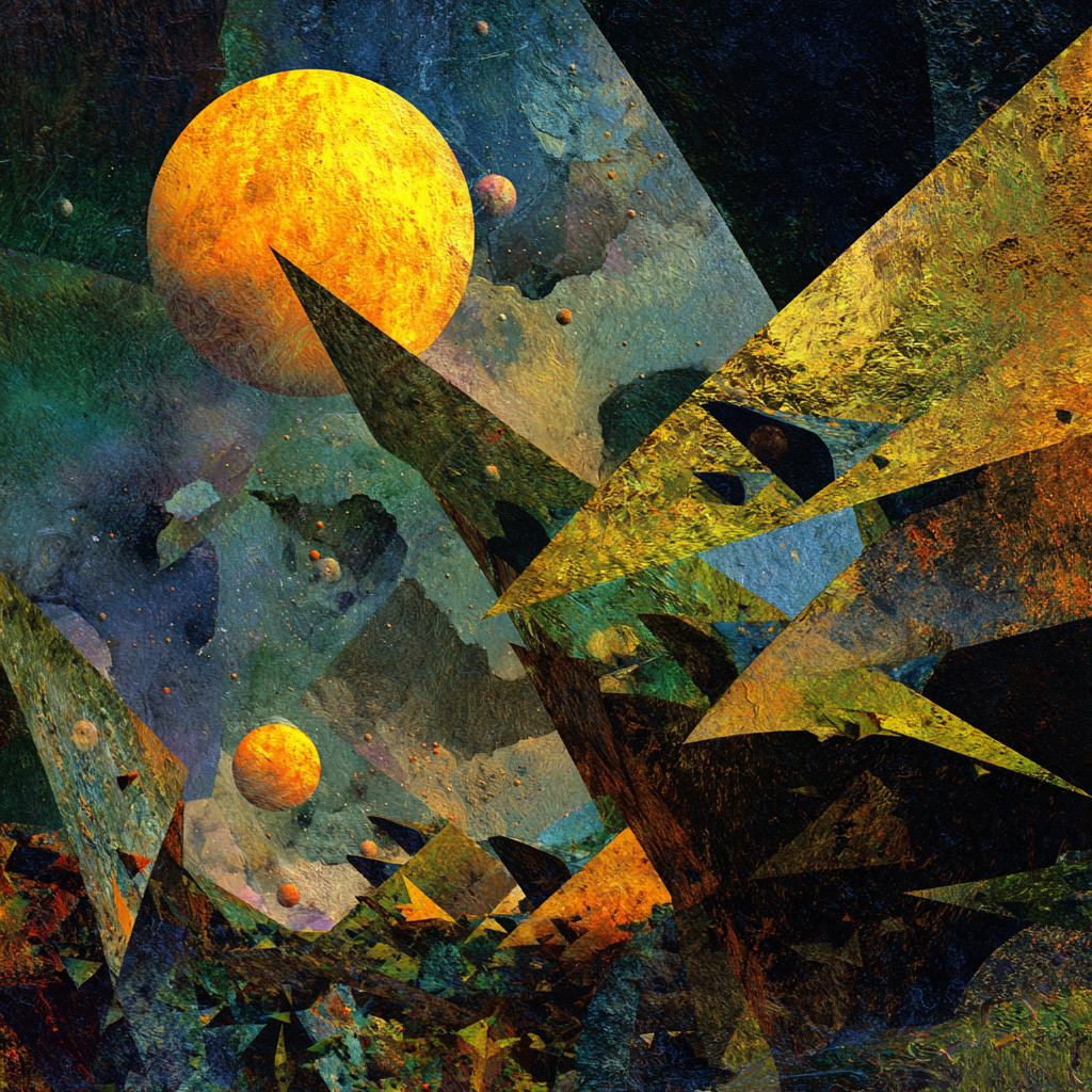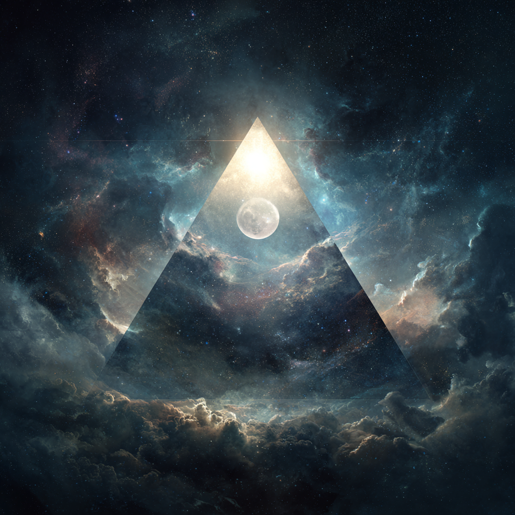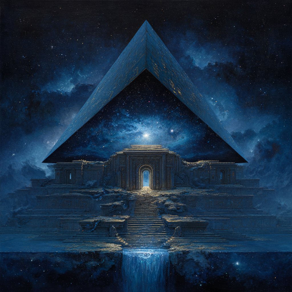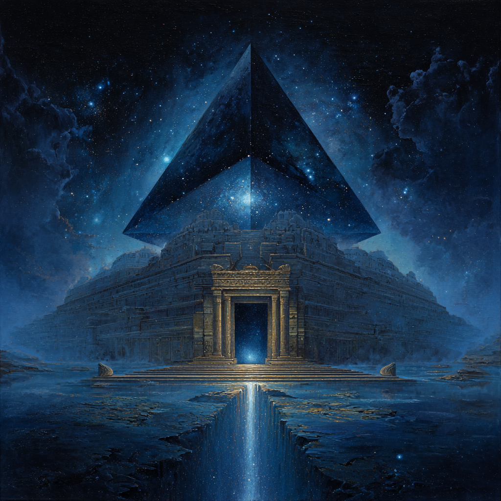 Slow solemn ambient, low-bass, space music, cosmic music harmonies, contemplative electronic composition blending classical baroque elements with modern synthesizer textures, Polyphonic, layered ambient electronic soundscapes, The overall mood is introspective and reverent, balancing mathematical precision of baroque composition with the expansive sonic possibilities of electronic music, Futuristic sound design