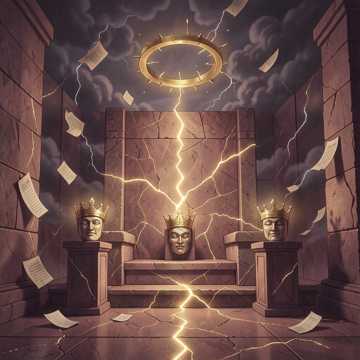 Accusatory brooding alt-rock with dark indie-pop undertones: clean electric guitar arpeggios, low-tuned bass, restrained live drums that swell into crashing toms and distorted chorus guitars, Minor-key synth pads, faint tape saturation, tense vocal harmonies, and a wide reverb tail on the final refrain