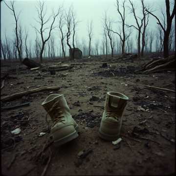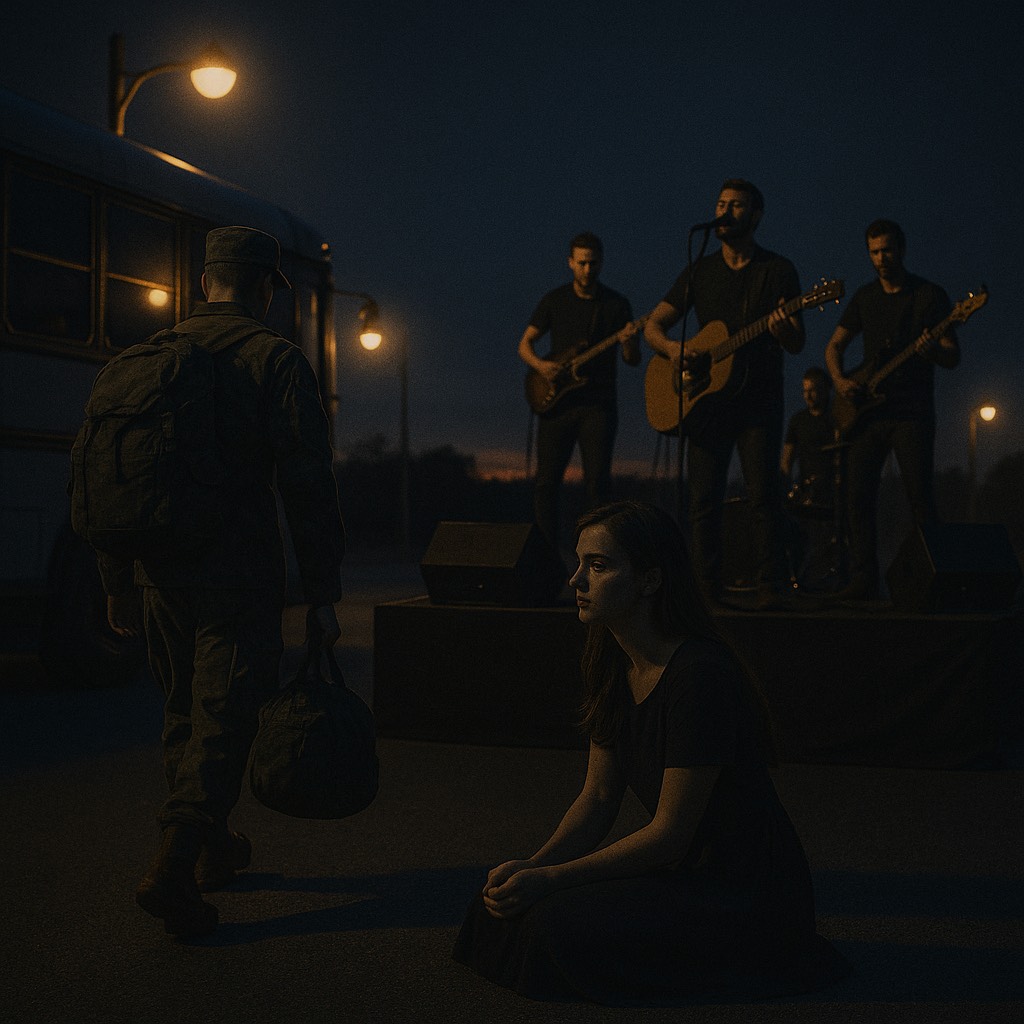 Punk rock à la My Chemical Romance, slow single piano keys and a growing drum beat, fast-paced electric guitars, raw emotional male vocals, dramatic tempo shifts, dark theatrical vibe, pounding drums, subtle backing screams, an anthem of despair and defiance, Echos of military taps in the background punctuated the tempo