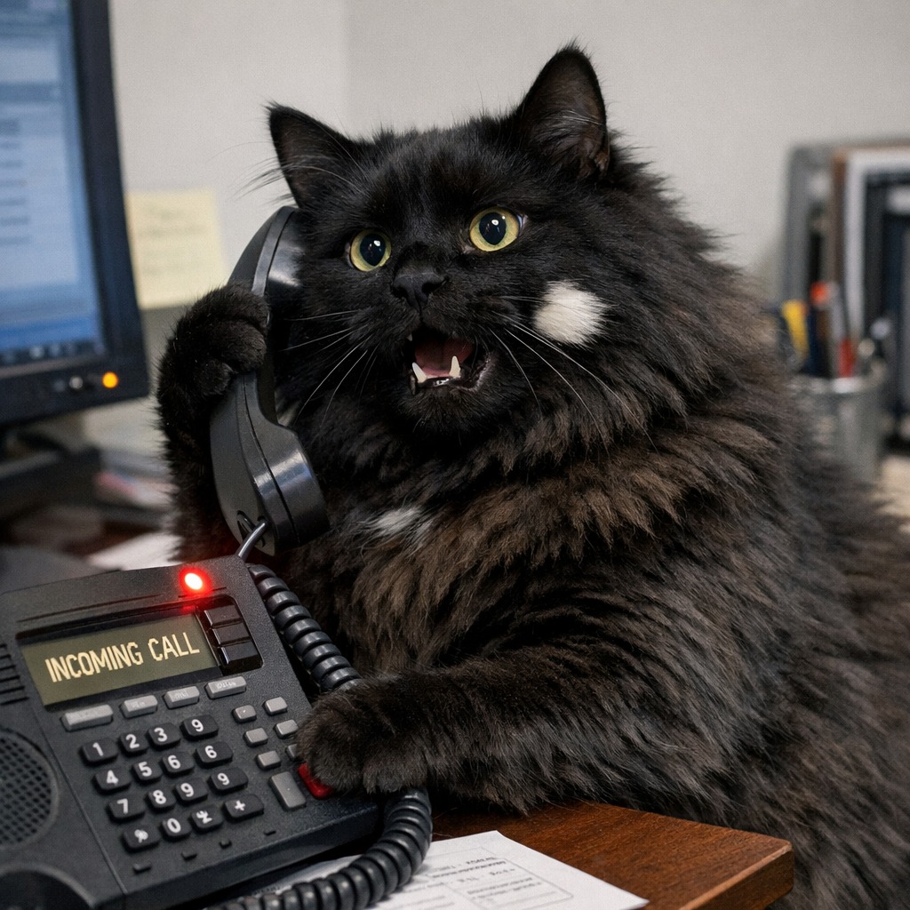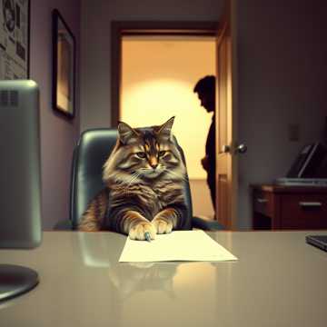 mid-tempo, playful indie blues with light shuffle groove, first-person perspective, awkward humor, observational storytelling, slight panic, workplace tension, subtle human/feline overlap, funny exit, clueless protagonist