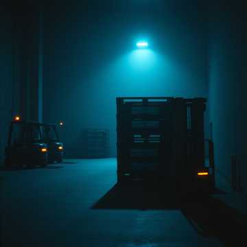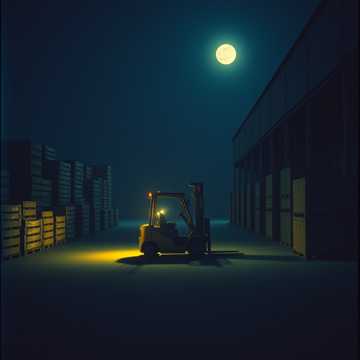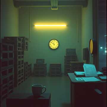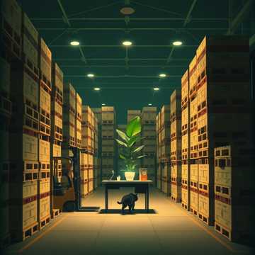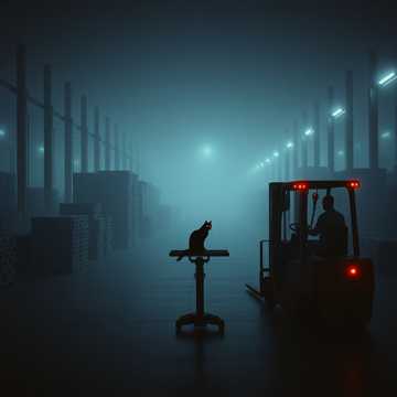 slow mid-tempo jazzy-blues with subtle tension, male vocalist, narrative storytelling, sleepy and slightly uneasy tone, ironic and humorous undertones, soft instrumentation with light percussion and ambient warehouse sounds