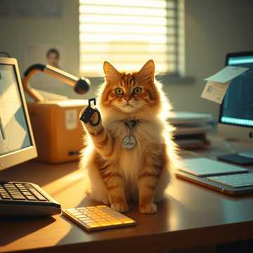 playful mid-tempo jazzy-pop with laid-back male/neutral cat lead vocal, humorous storytelling from a new “employee” perspective, subtle corporate echo phrases, whimsical and absurd tone, light celebratory energy in chorus, soft and cheeky outro