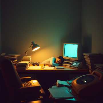 laid-back mid-tempo whimsical workplace musical with sleepy lo-fi funk groove, conversational storytelling, circular dialogue, subtle corporate jargon, relaxed humorous tone, low-energy delivery