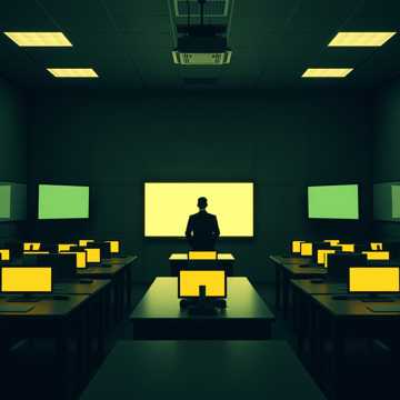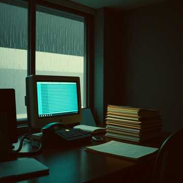 mid-tempo investigative workplace musical, playful but serious tone, conversational voices