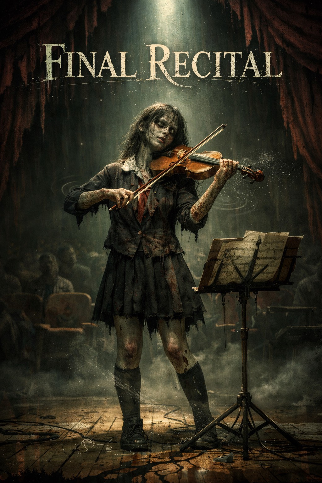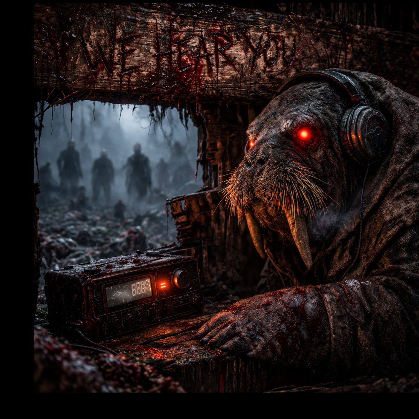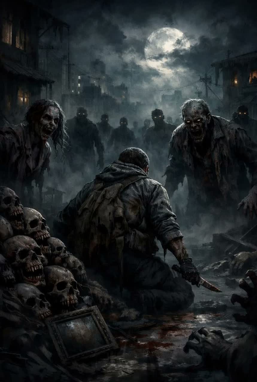 Ultra Dark Zombie Apocalypse Ambient, cinematic horror soundscape, post-apocalyptic dread, infected city atmosphere, abandoned hospital corridors, distant emergency sirens, industrial dark drone, slow heartbeat pulse, claustrophobic tension, deep sub rumble, dissonant strings, reversed piano fragments, bowed metal textures, glitch static, broken radio chatter, zombie moans in the distance, survival bunker terror, wet concrete ambience, decayed reverb, binaural fear atmosphere, hopeless, cold, suffocating, relentless, no pop, no bright synths, no heroic tone, โhappy vibe, โpop polish, โtropical feel, โbright EDM festival sound, โcomedy tone, โcheesy horror camp uplifting melodies โ heroic tone โ EDM drops โ trap drums โ clean vocals โ bright synths โ major chords