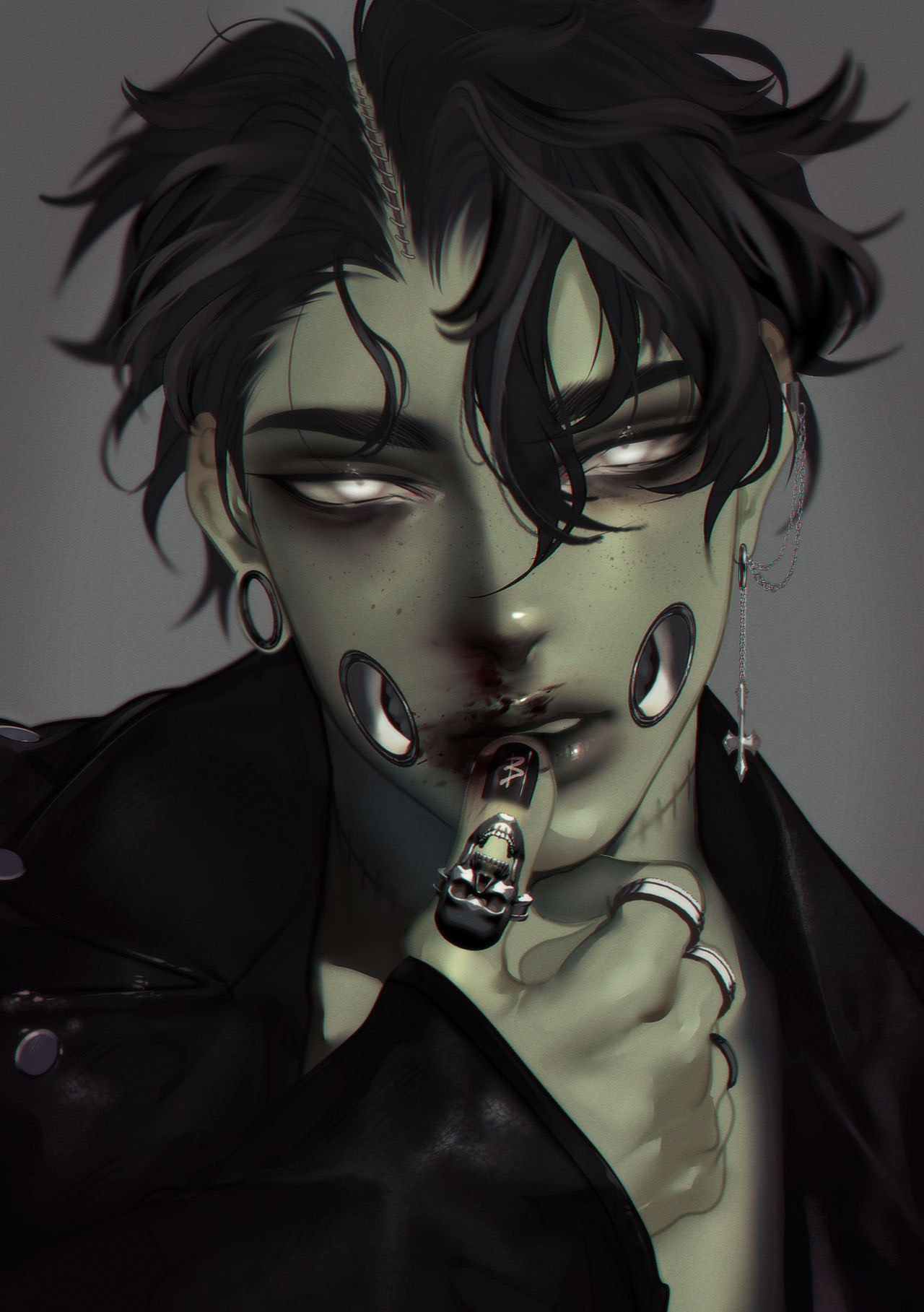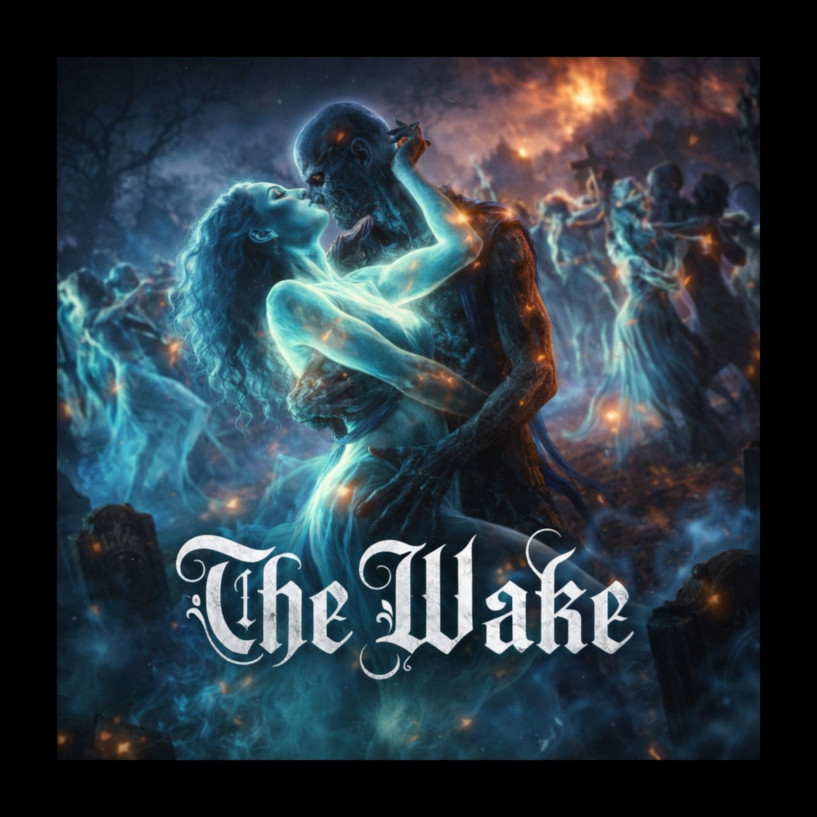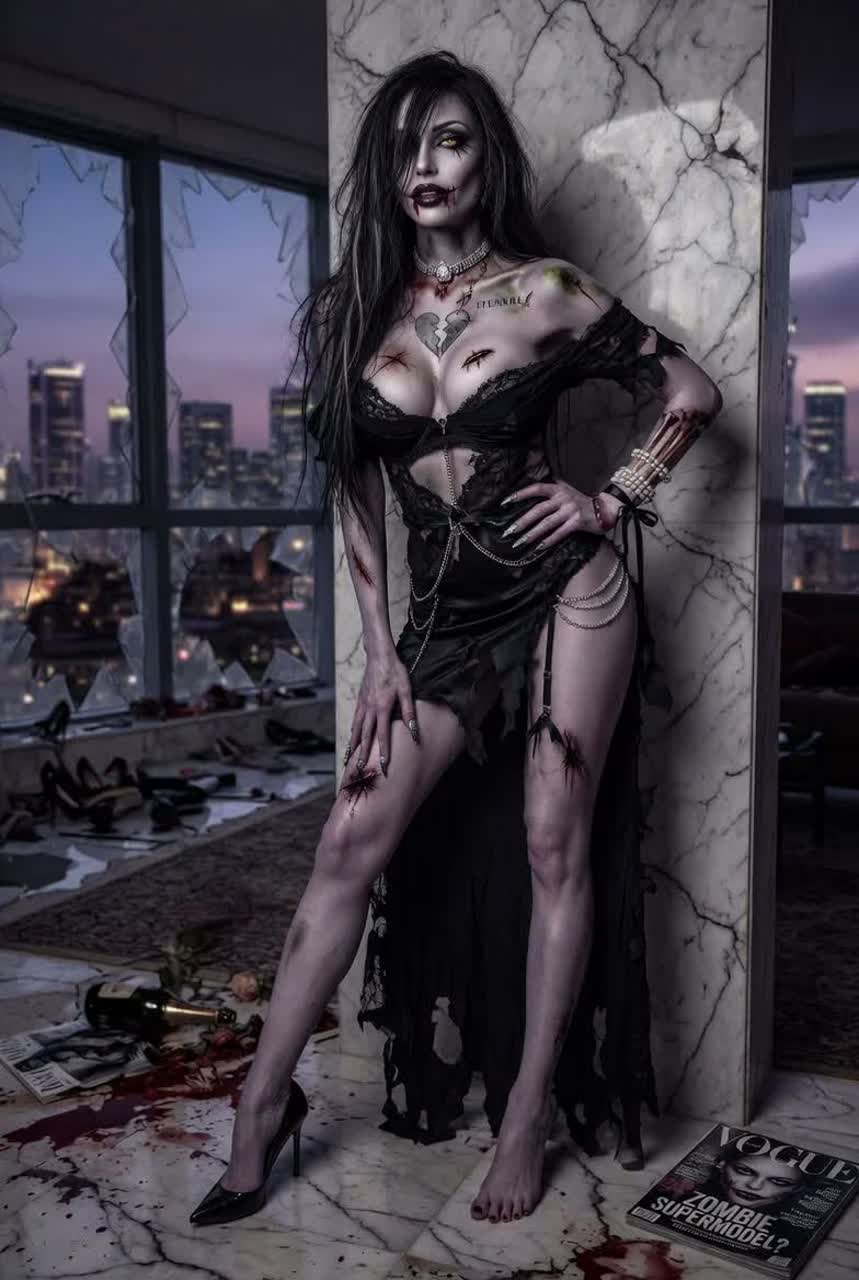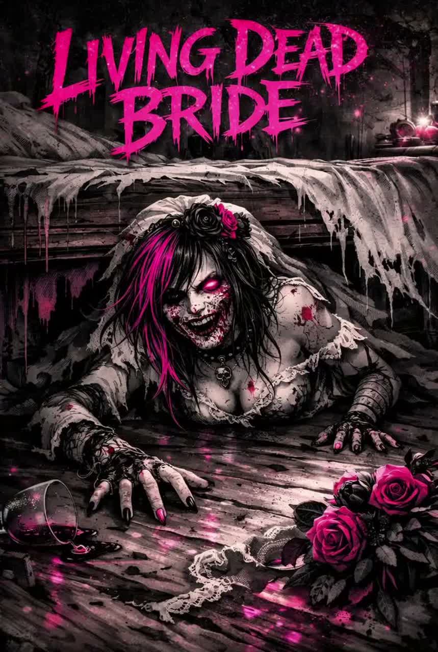 Gothic metal anthem, rock, zombie shrieks, scratchy female vocals, distorted screams, glitch vocal effects, coffin lid percussion, detuned baritone guitars, palm muted riffing, octave bass, industrial synth stabs, broken drum fills, gated room reverb, overdriven mix bus, harsh clipping, minor key, aggressive build, chant hook, undead fury