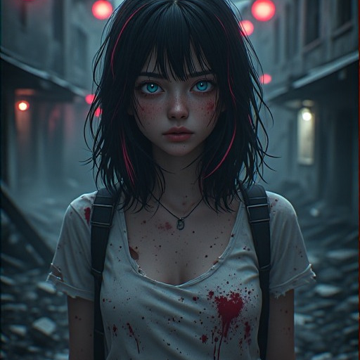 Haunting cinematic dark-synth meets apocalyptic punk-metal with horror ambience, Female vocals (whispered โ snarled โ screamed), ~145โ150 BPM, D minor, Verses: tense, minimalโwhispered over pulsing synth bass and glitchy repeats, Pre-chorus: rising tension, tom fills, filtered synths, Chorus: explosiveโfast punk drums, double-kick, chugging guitars, dark synths + melodic hook, Bridge: half-time breakdown, heavy, distorted, haunting layers, Outro: crushed reverb, glitch decay