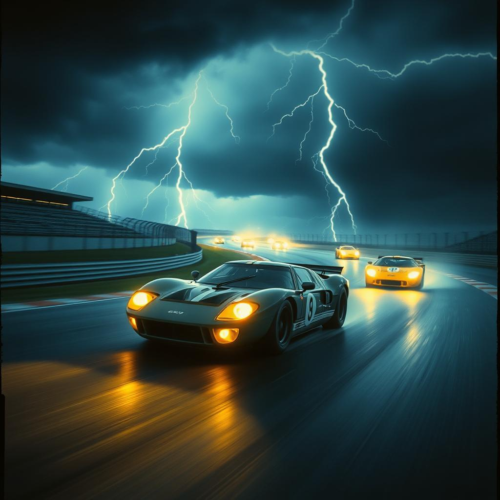 An epic, high-energy rock track fused with a full orchestral arrangement, Electric guitars, driving bass and drums, and rich synth layers combine with, intense electric violins, and deep electric cellos to create a cinematic and dynamic soundscape, The vocal style is a singing commentary, confident and expressive but not operatic, delivering a storytelling performance with energy but keeps vovels normal, The music flows with tension, adrenaline, and drama fitting a championship racing showdown, Genre:
