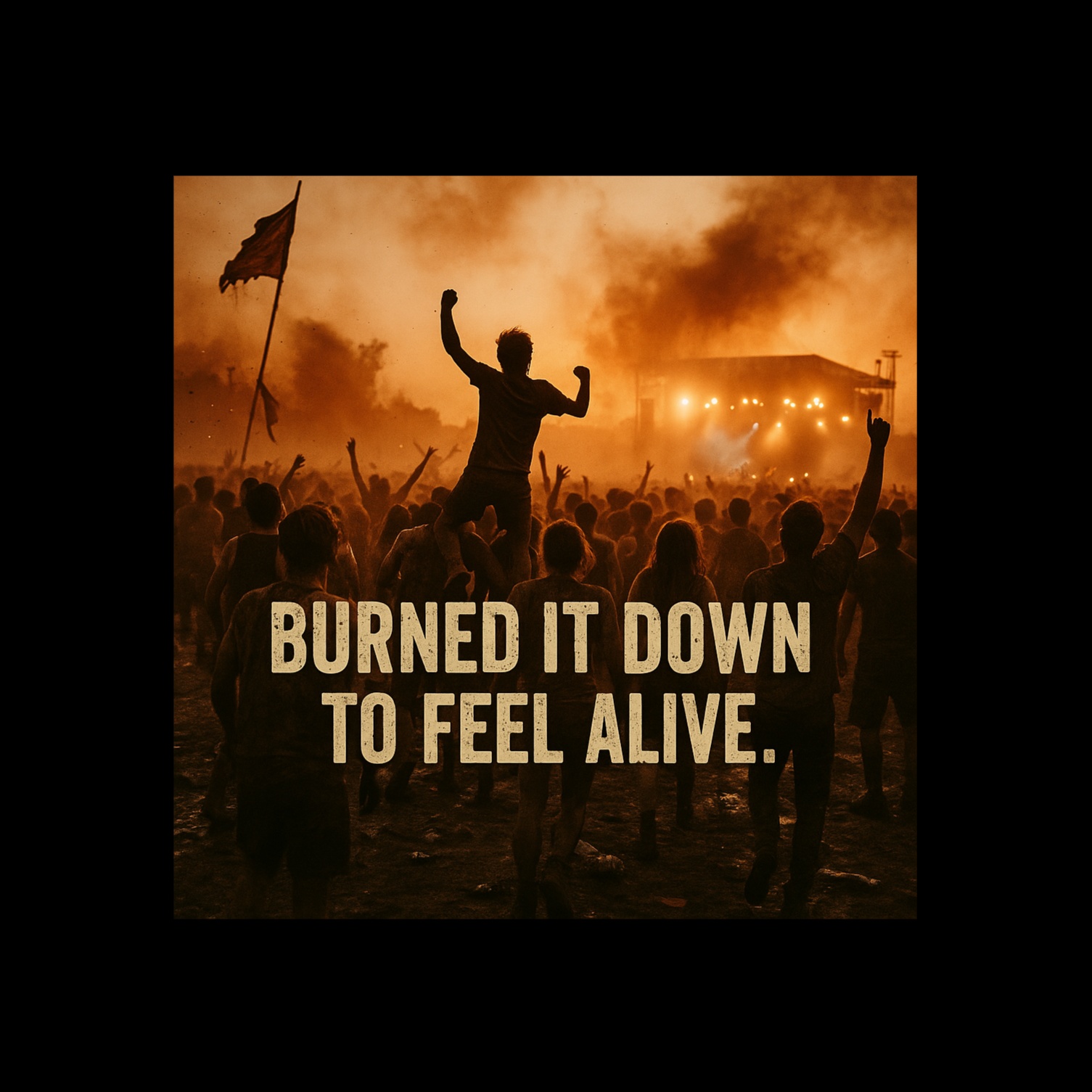 Structure: Verse – Pre – Chorus – Verse – Pre – Chorus – Bridge – Final Chorus, Bridge is stripped back, final chorus explodes, Nostalgic, rebellious, cathartic — like the world’s on fire and you’re singing through it