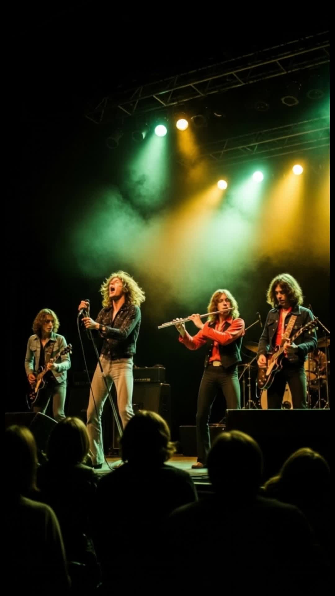 1972 vibe, The track begins as a gentle, introspective folk piece, led by intricate fingerpicked acoustic guitar and a haunting, melancholic flute melody, It gradually blossoms, introducing subtle piano and a warm bassline, evolving into a classic '70s folk-rock anthem, The intensity continues to build, driven by dynamic drums and a soaring electric guitar, culminating in a powerful, symphonic progressive rock soundscape, 1970's, seventies, soaring vocals, mystical and dark